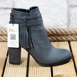 Gri Süet Kadın Bot Fermuarlı Füme Püsküllü Topuklu Ayakkabı Noa10