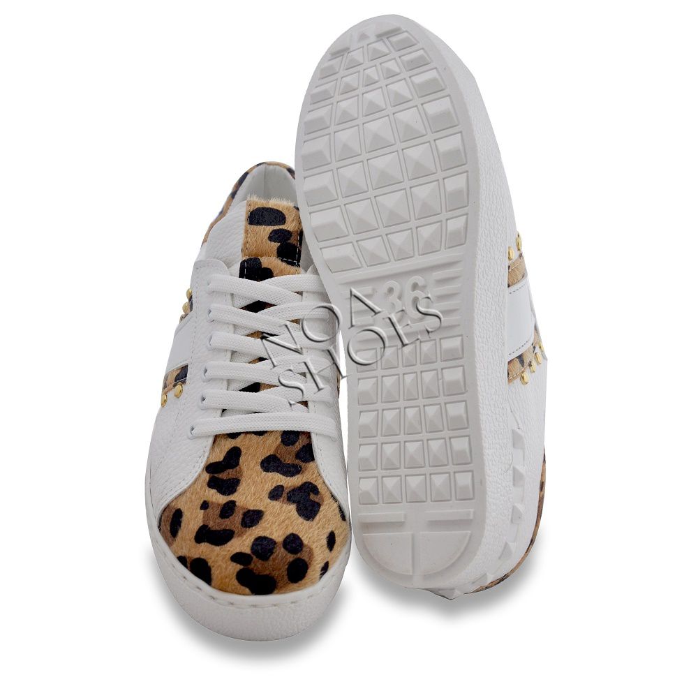 Kadın Sneakers Leopar Tüylü Beyaz Spor Ayakkabı Zımbalı4